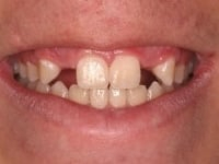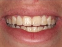 No-prep, lingual-bonded bridges to replace missing teeth conservatively. The missing teeth were custom shaded to create the blend with the natural teeth.