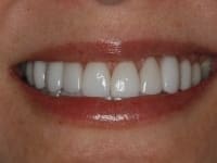 Beautiful Konig Smile Design, combination of implants, veneers and all ceramic crowns. Note the beautiful contours and natural appearance of the teeth and how it follows her smile line. Additionally, her bite has been corrected for comfort and longevity. Patient enjoying a beautiful smile.